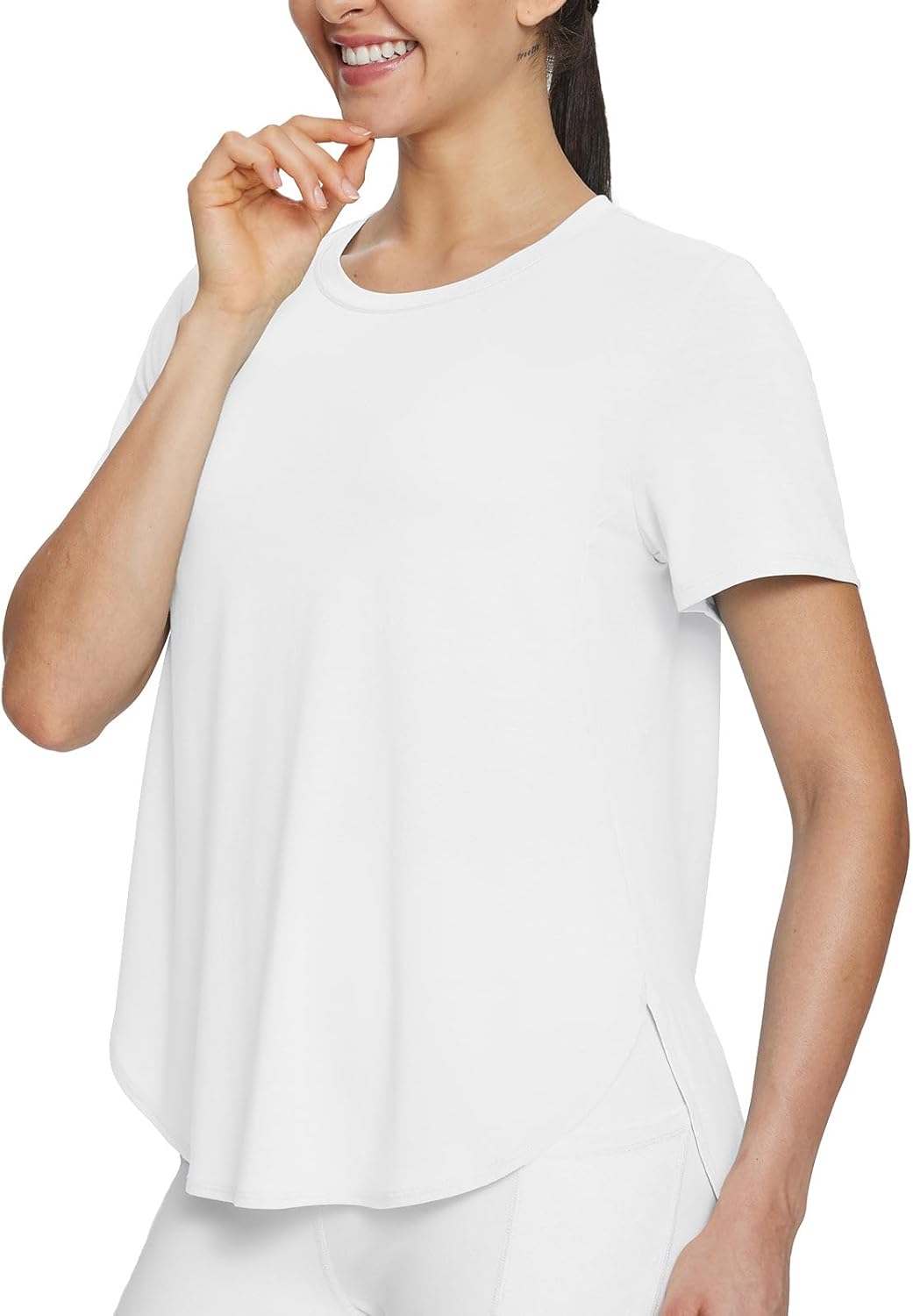 - Loose fit & High-Low Hem: The loose design makes you move freely without sticky and restraint. This workout short sleeves have a longer back hem for more coverage. It’s hip length. It enables one to wear it comfortably even if they have larger hips.