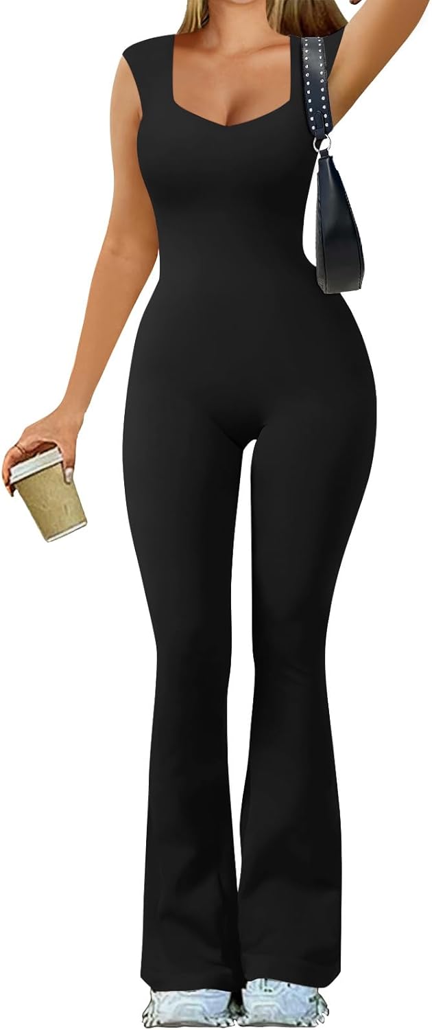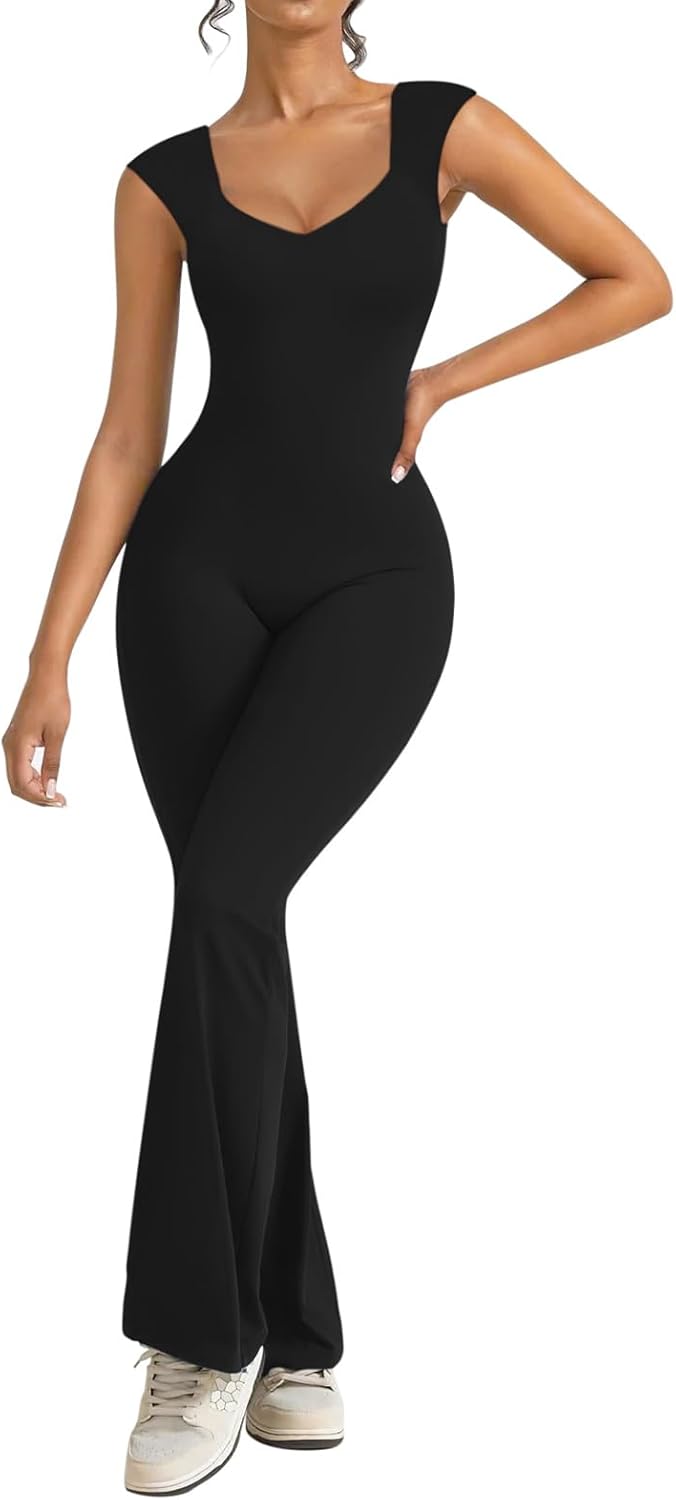 - 🌸Design – This trendy jumpsuit features a zipper-free back and a pull-on design, making it easy to slip on and off.Flare Jumpsuits with sleeveless ,full length with trousers that gently flare at the knee, complete with a soft V neck that show your sexy curvy,make a seductive look.